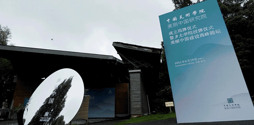 2021年6月18日,美丽中国研究院”成立揭牌仪式暨“美丽中国”建设圆桌论坛在中国美术学院象山校区举行。教育部高教司司长吴岩,浙江省人民政府副秘书长蔡晓春,中国文联副主席、浙江省文联主席许江,中国美术学院党委书记金一斌共同为中国美术学院美丽中国研究院揭牌。
